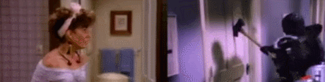 -Right before Ashley’s attacked, the Augers are busting down the adjacent door with axes.